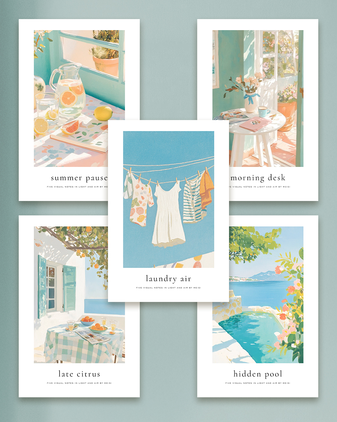Cada imagen está diseñada para transmitir calma, color y belleza cotidiana —como una pausa de verano.